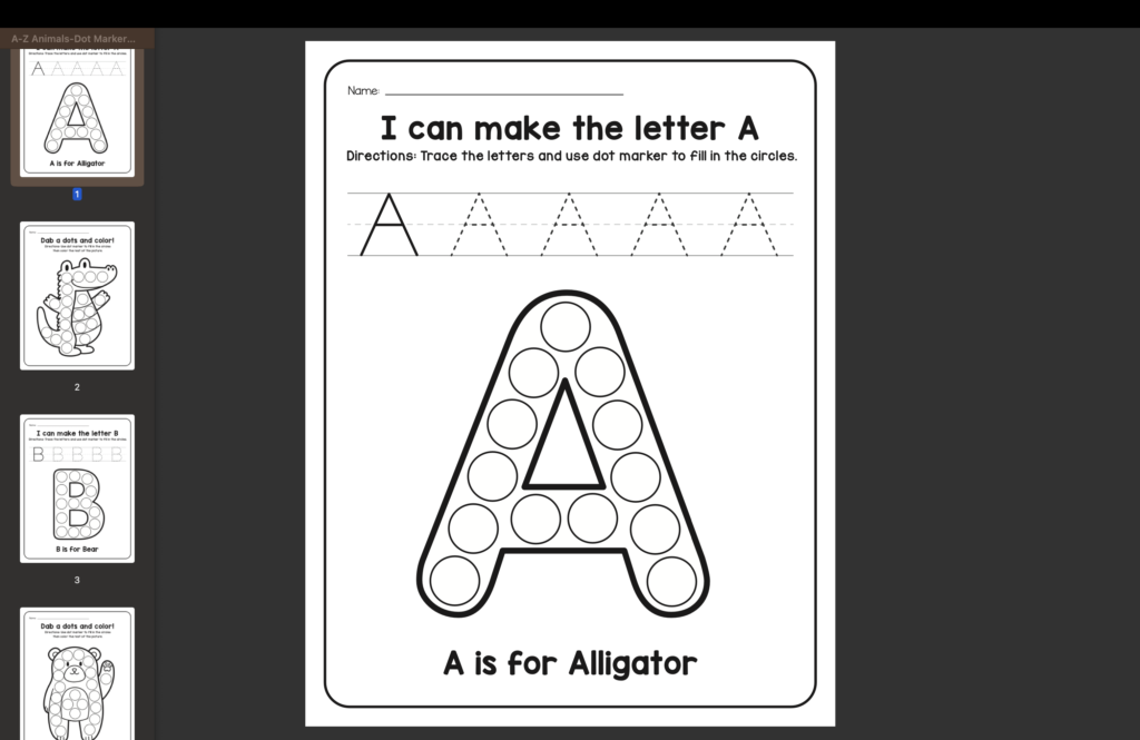 You’ll find activities for toddlers, preschoolers, kindergarten, and early primary grades — everything neatly organized by topic and difficulty.